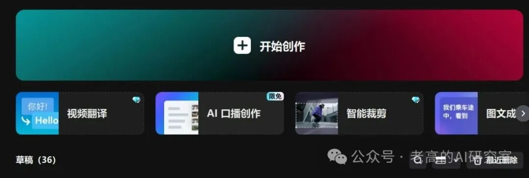 - 打开剪映,点击开始创作。