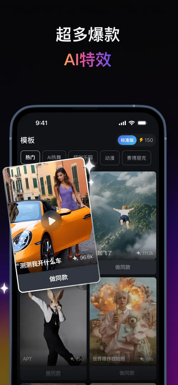- 模板库丰富:内置数十种热门特效模板,如“毒液变身”“肌肉猛男”“拥抱耶稣”等,轻松打造社交风格视频。